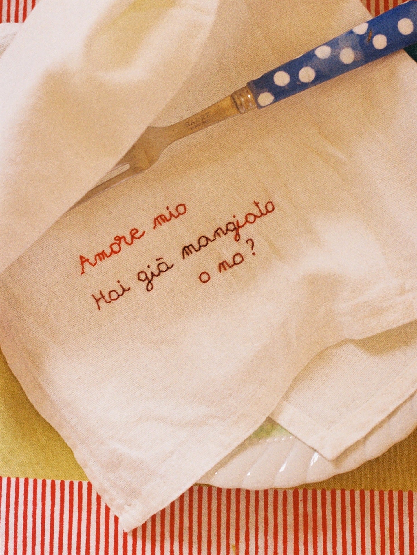 Created exclusively for the 2025 edition of EDIT Napoli, this limited series of hand-embroidered Napkins unfolds like fragments of a love letter.