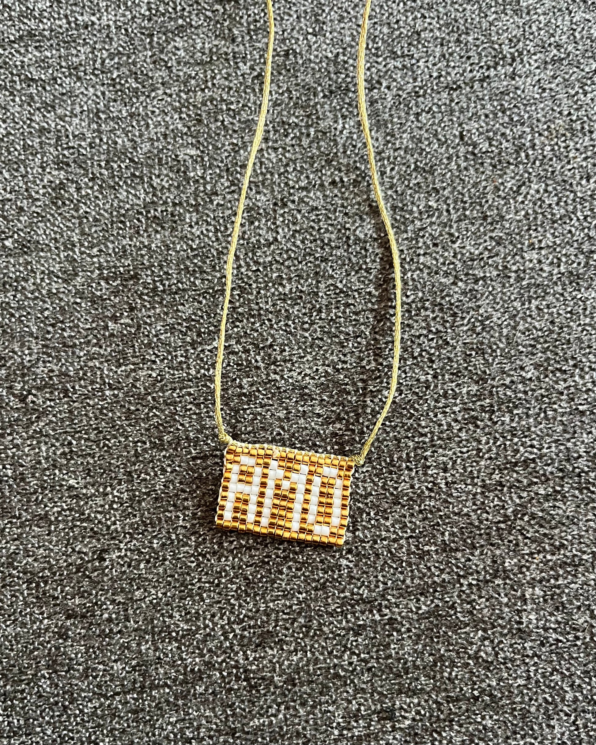 The AMO necklace is handwoven using precise Miyuki beadwork.