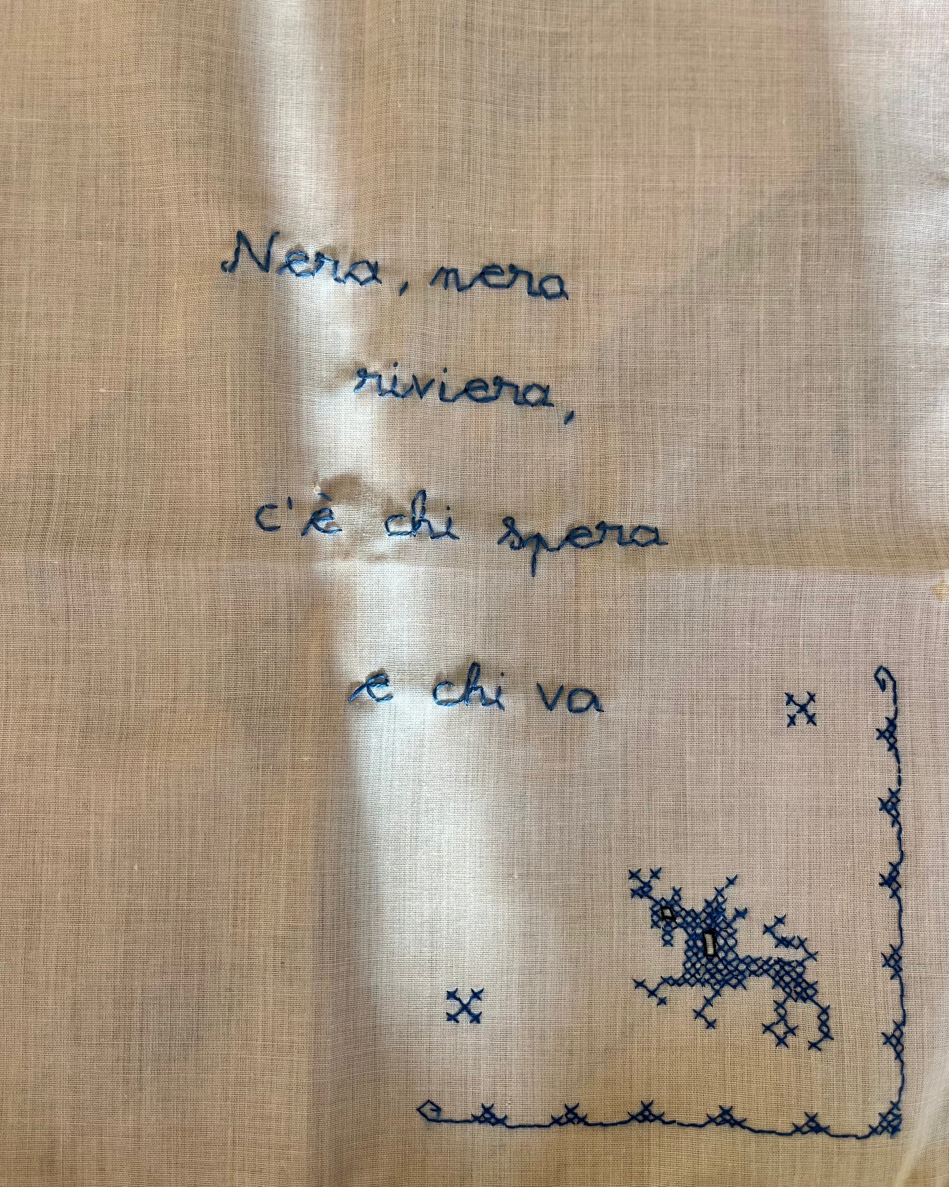 An old hand-embroidered handkerchief, kept intact with its unique texture and depth.