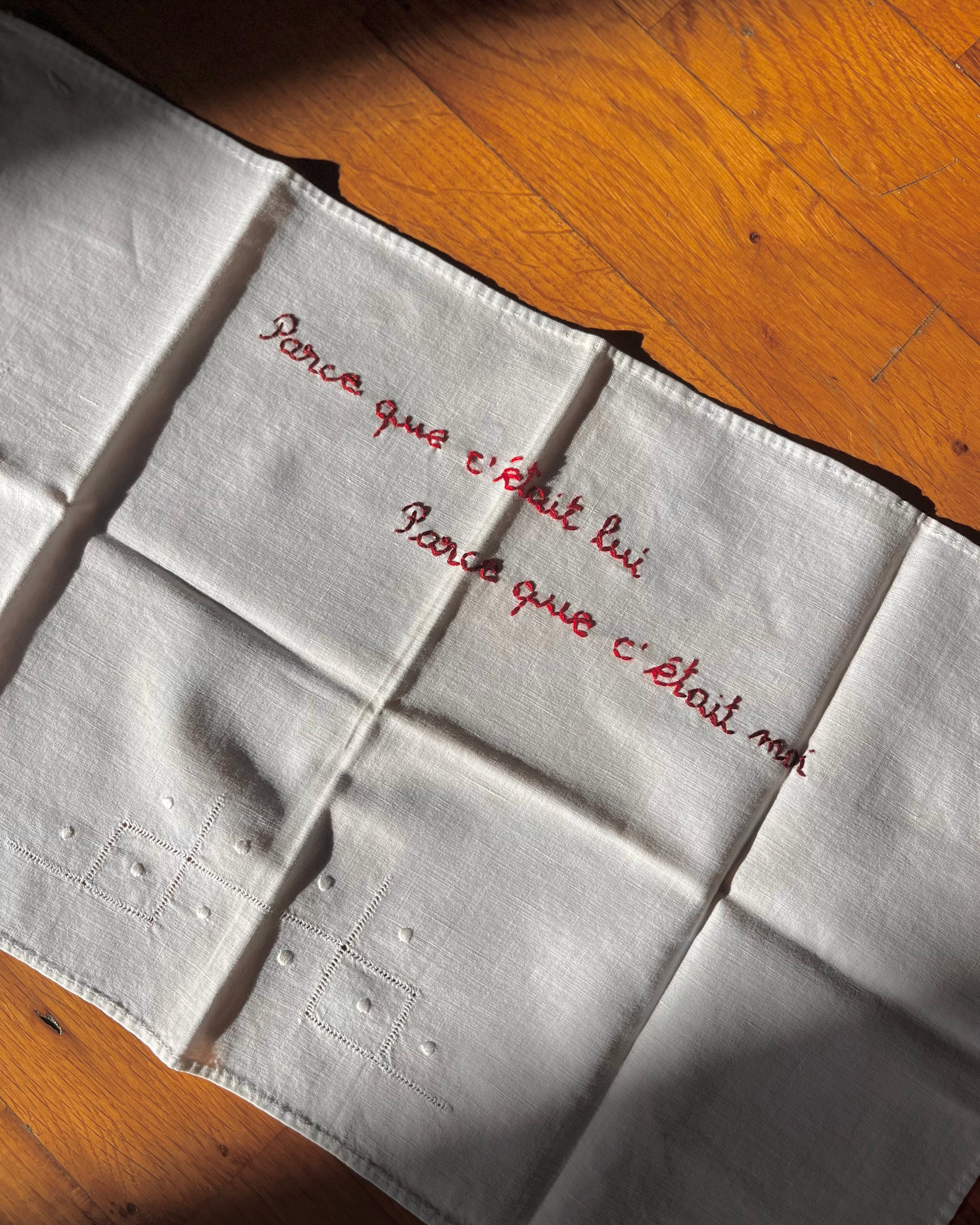Parce que c'était lui – Hand-embroidered artwork